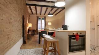 Appartamento arredato in affitto nel quartiere Raval, perfetto per una persona o una coppia senza figli che debba trascorrere un periodo di massimo 12 mesi a Barcellona. Dispone di una camera da letto matrimoniale, un moderno e ampio bagno, una cucina aperta equipaggiata con elettrodomestici e utensili e un comodo soggiorno sala da pranzo con accesso ad un balcone. L'alloggio è inoltre dotato di aria condizionata, connessione a internet e televisore.