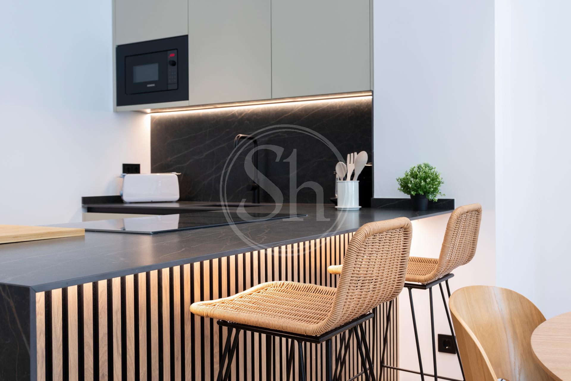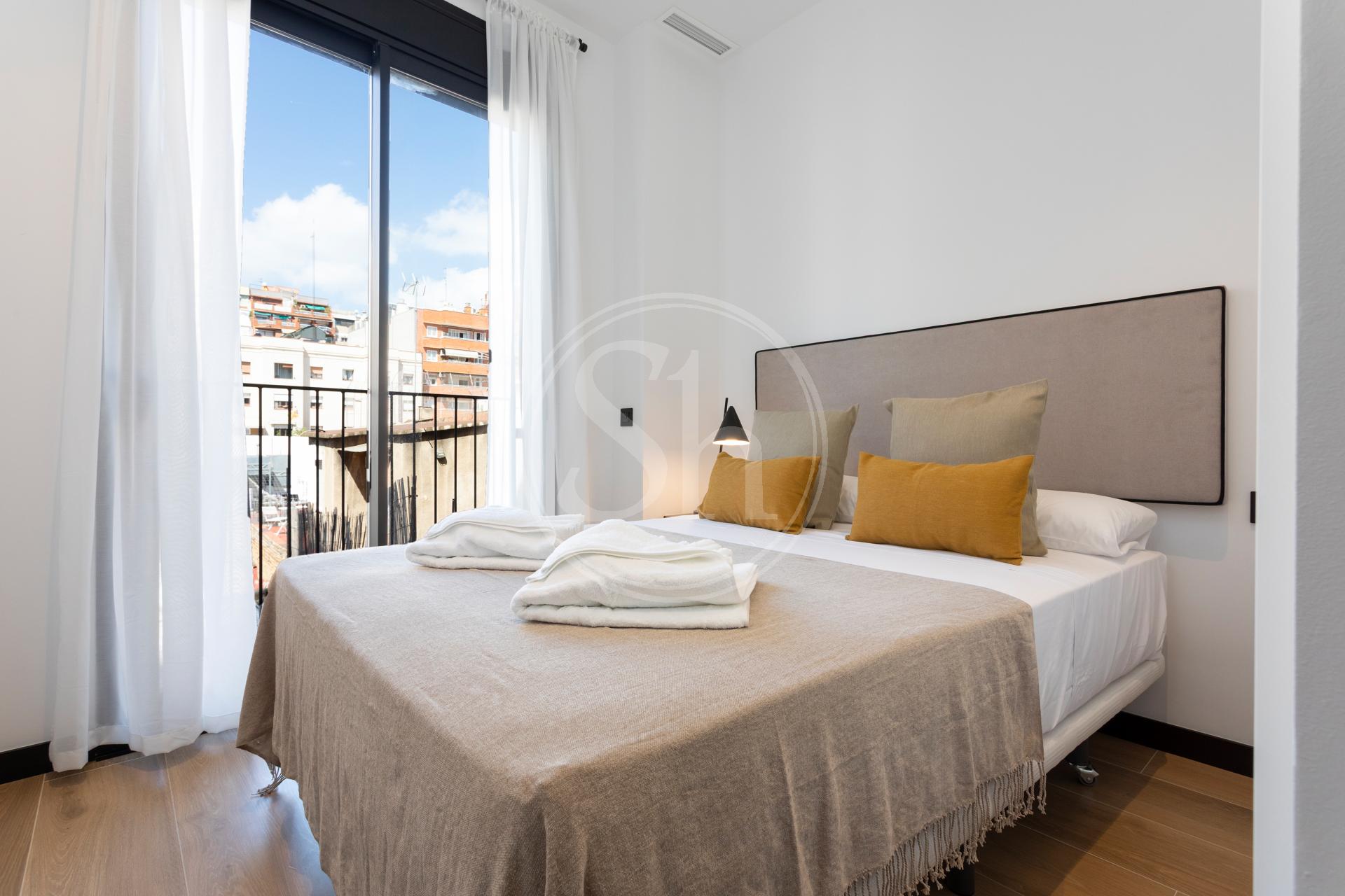 ShBarcelona presenta este encantador y luminoso apartamento, totalmente amueblado y equipado, en una finca con ascensor. Dispone de tres dormitorios con camas dobles, dos baños completos con duchas, cocina americana totalmente equipada y un confortable salón-comedor con salida a balcón exterior.